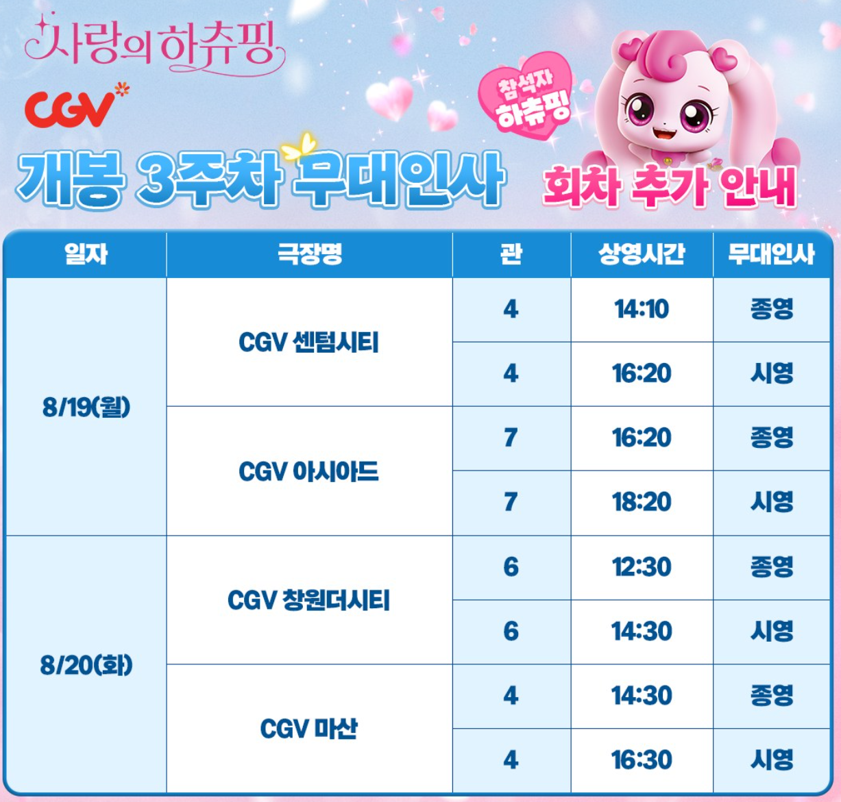 8월 19일 사랑의 하츄핑 무대인사 CGV 센텀시티, CGV아시아드