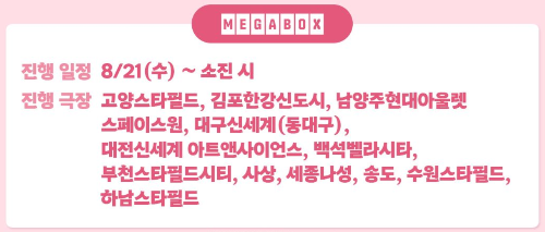 8.21~ 8/27 (또는 소진 시, 극장 종류마다 다르니 확인하셔요)