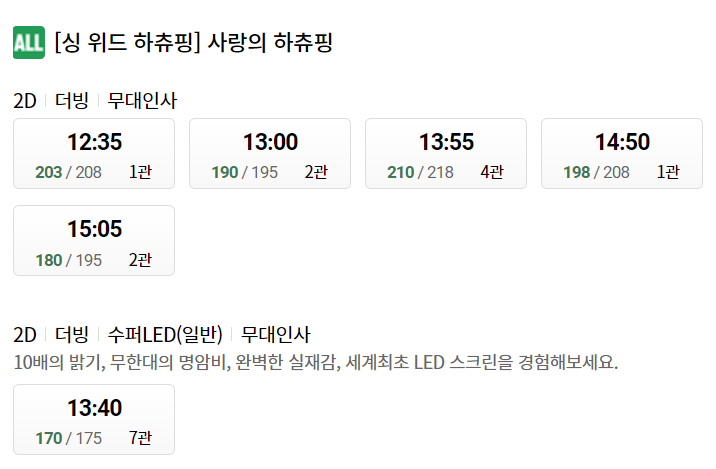 일어나 노래를 함께 따라 부르기가 가능한 회차로, 롯데시네마에서 8/21~라고 되어있는데요