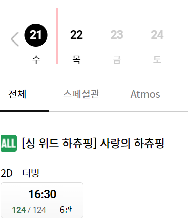 일어나 노래를 함께 따라 부르기가 가능한 회차로, 롯데시네마에서 8/21~라고 되어있는데요