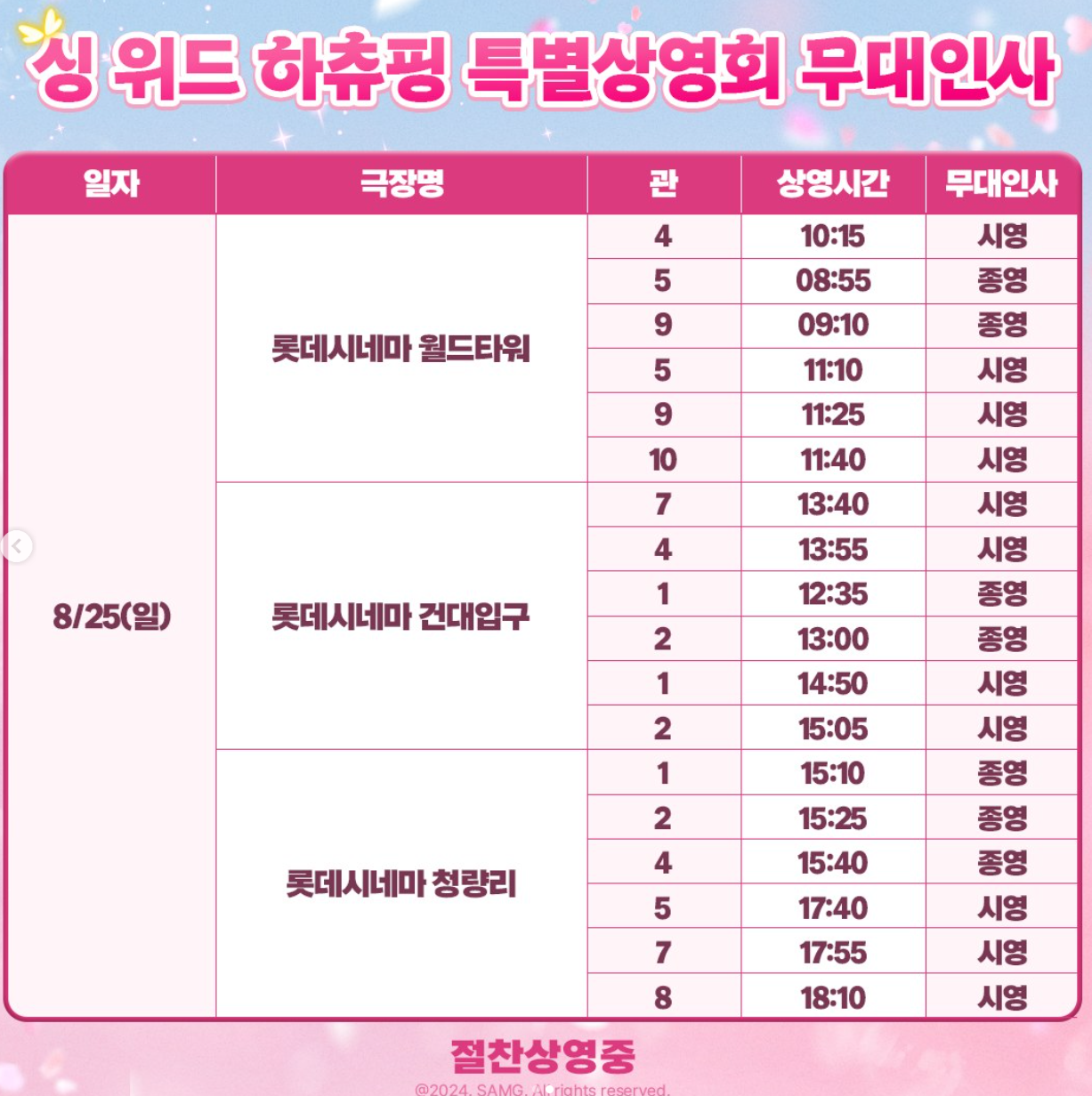 놓치지 말아야할 특별한 싱 위드 하츄핑 특별 상영회 일정 알려드릴게요.