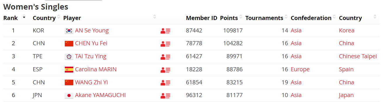 야마구치 아카네의 현재 세계 랭킹은 6위입니다.