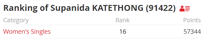 수파니다 카테통 선수의 세계 랭킹은 현재 16위입니다.
