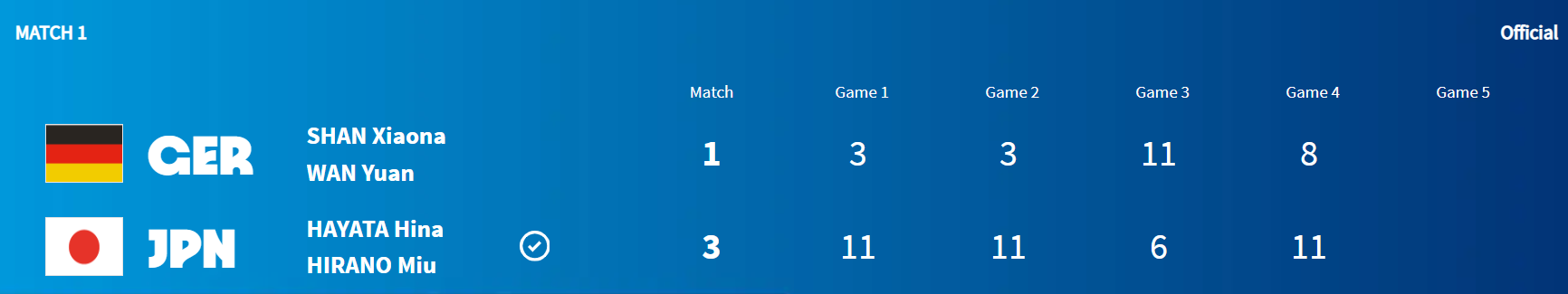 여자 탁구 단체 4강전 독일 VS 일본 경기 내용
