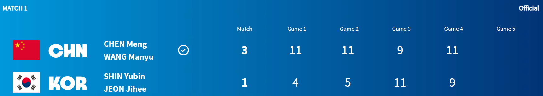 신유빈-전지희 VS 첸멍-왕만위