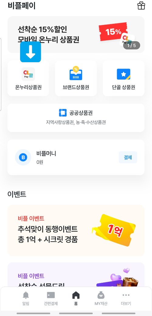 우선 비플페이 앱을 다운받아 휴대폰에 설치 해주세요.