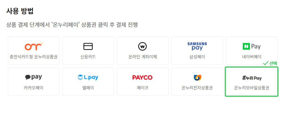 사이트마다 약간의 차이가 있을 수는 있겠지만, 온라인 구매시 상품결제단계에서 '온누리페이' 온누리 모바일 상품권 클릭하신 후 결제 진행하시면 된다고 합니다:)