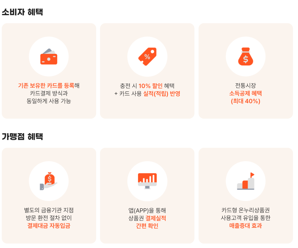 카드형 온누리상품권의 특이점은 기존 보유한 카드를 등록해 사용할 수 있다는 점, 카드 사용 실적이 반영된다는 점이에요. 충전시 10% (특판이 15%, 현재 추석 특판 중) 할인 혜택이 있다는 것과 전통시장 소득공제 혜택은 다른 온누리상품권의 혜택과 동일합니다.