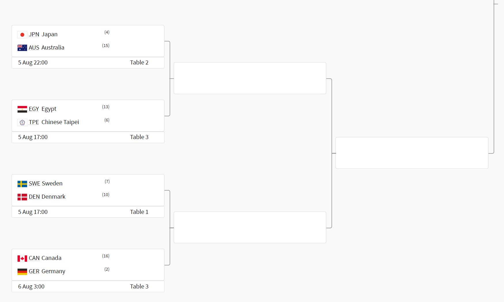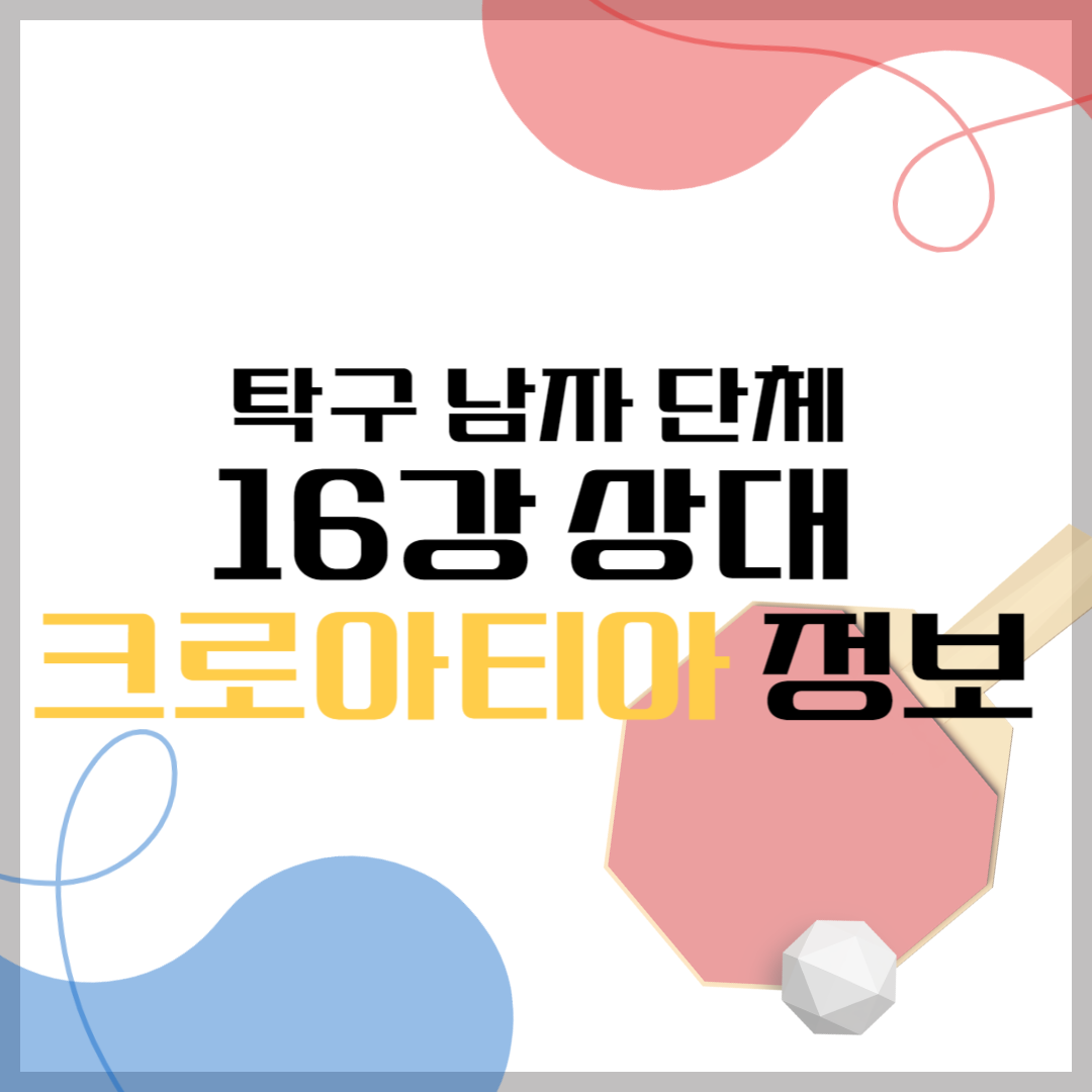 탁구 남자 단체 16강전은 8월 6일 17:00에 크로아티아를 상대로 열립니다. 우선 남자 탁구 대진표부터 한번 살펴볼까요