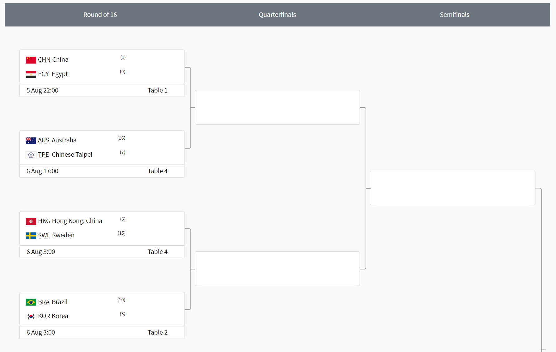 브라질과의 경기에서 승리하면, 8강에서 스웨덴 VS 홍콩의 승자랑 맞붙게 됩니다. 아마도 랭킹 6위 홍콩이 올라오지 않을까 싶네요. 그리고 4강에서는 중국을 만나게 되겠죠. 중국을 꺾으면 좋겠지만 사실상 그걸 기대하기는 무리고, 동메달 결정전에서 어떤 상대를 만나게 어떤 경기를 펼칠지가 메달 여부를 결정짓는 승부처가 될 것으로 보입니다.